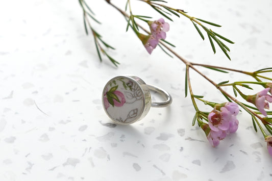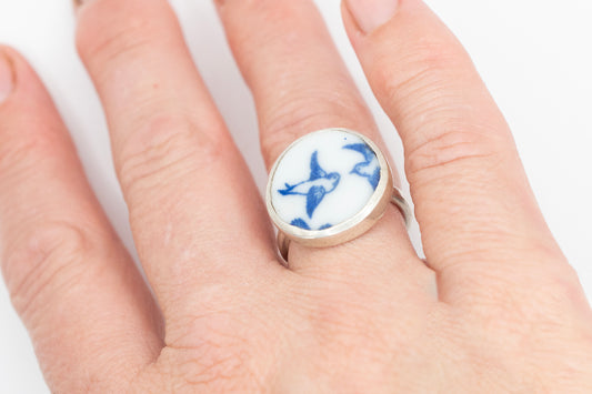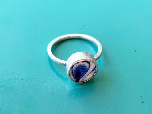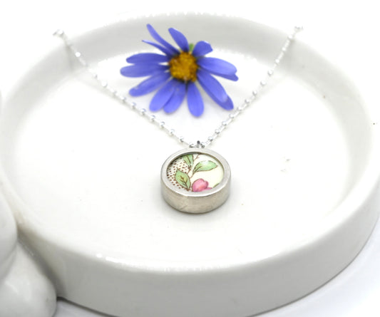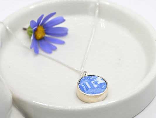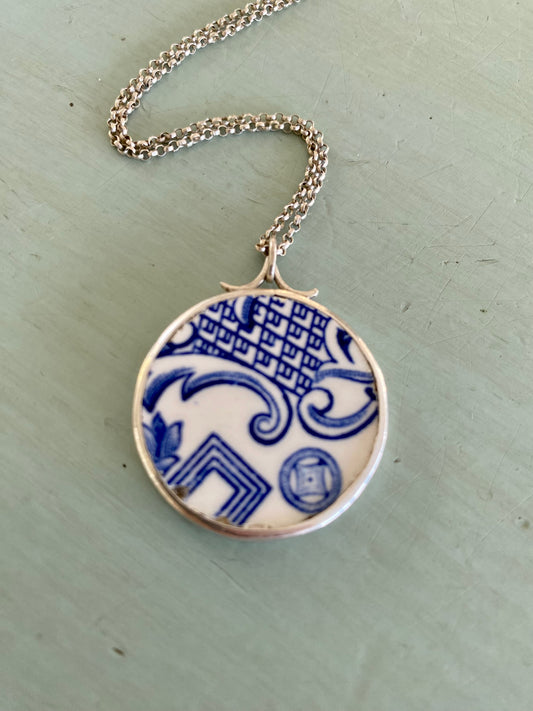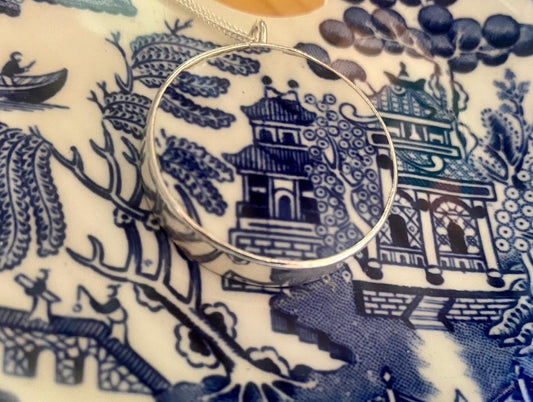 Light Blue & white antique ceramic Willow pattern and silver pendant
