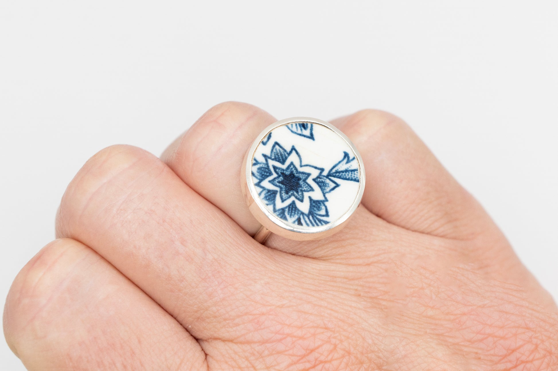 Each of my ceramic pieces is truly special—either one of a kind or made in very limited numbers. I carefully shape and set fragments of broken china and ceramic plates into sterling silver, giving them a beautiful new life.